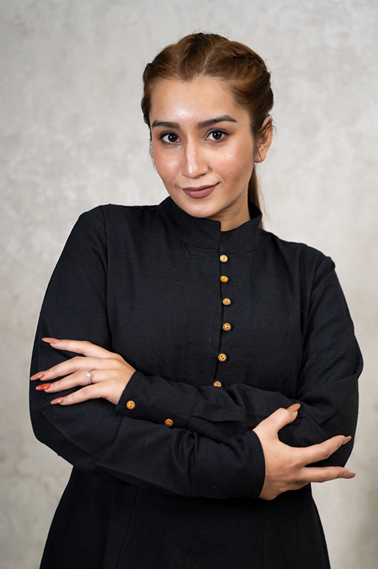 Where mindful design meets everyday elegance — the Ebon Flow Dress brings together yoga-inspired comfort and refined sophistication. Tailored in a fluid silhouette with full-length sleeves, it’s designed to move with you through both relaxed and formal moments.