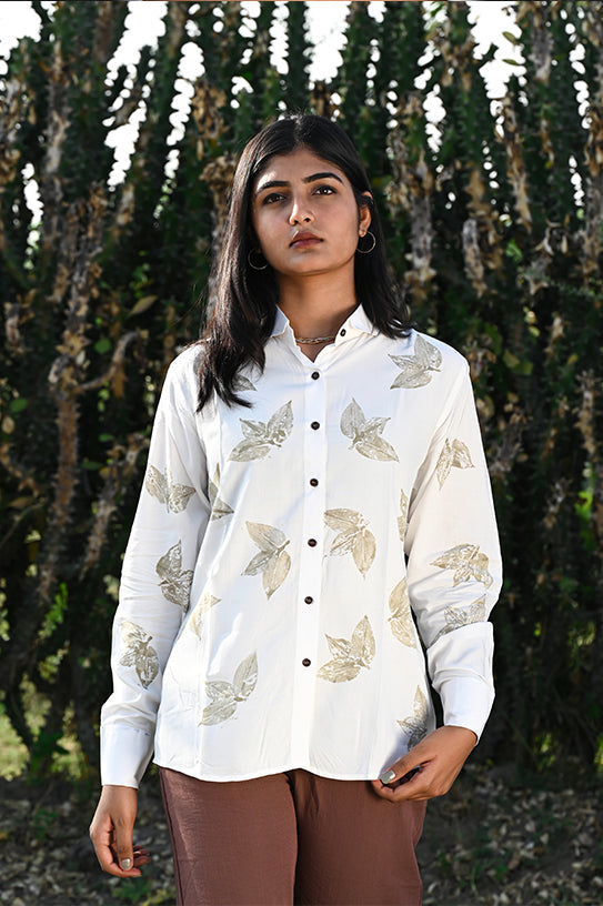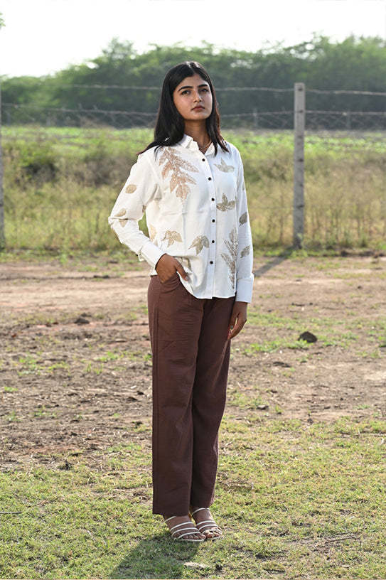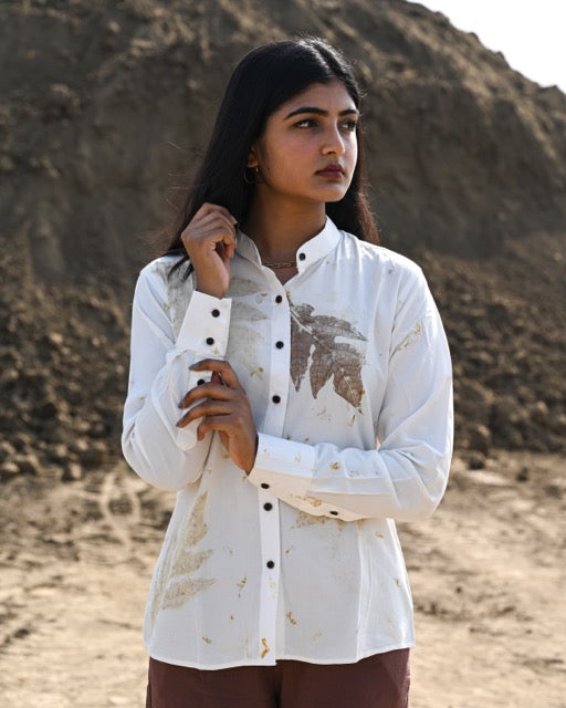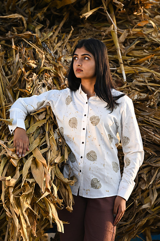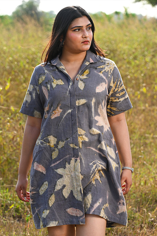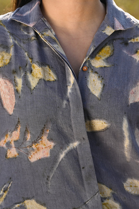 Discover sustainable sophistication with our Indigo Botanical Dress, crafted from 100% natural fabric that feels soft and breathable against the skin. Featuring a rich indigo-dyed background, this dress is uniquely enhanced with eco-printed botanical leaves, created through an environmentally friendly printing process that celebrates the beauty of nature.