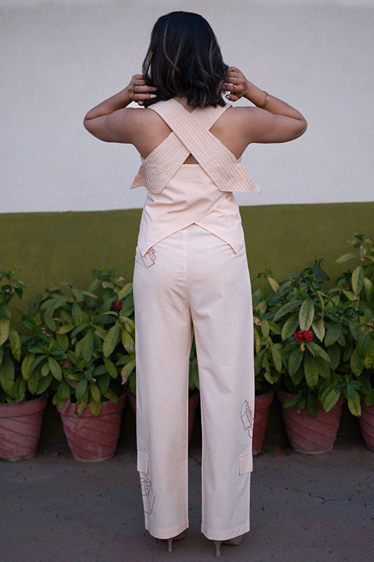 Elevate your wardrobe with this effortlessly chic 2-piece coord set, crafted from sustainable cotton for a soft, breathable feel. The square-neck top features delicate pintuck detailing on both the front and back panels, adding subtle texture and refined elegance. Paired perfectly with high-waisted, wide-leg pants, the ensemble showcases a unique circular Kantha embroidery motif that celebrates traditional craftsmanship with a modern twist. This set offers a relaxed yet polished silhouette, making it ideal for everything from casual outings to stylish gatherings, all while embracing sustainable fashion.
